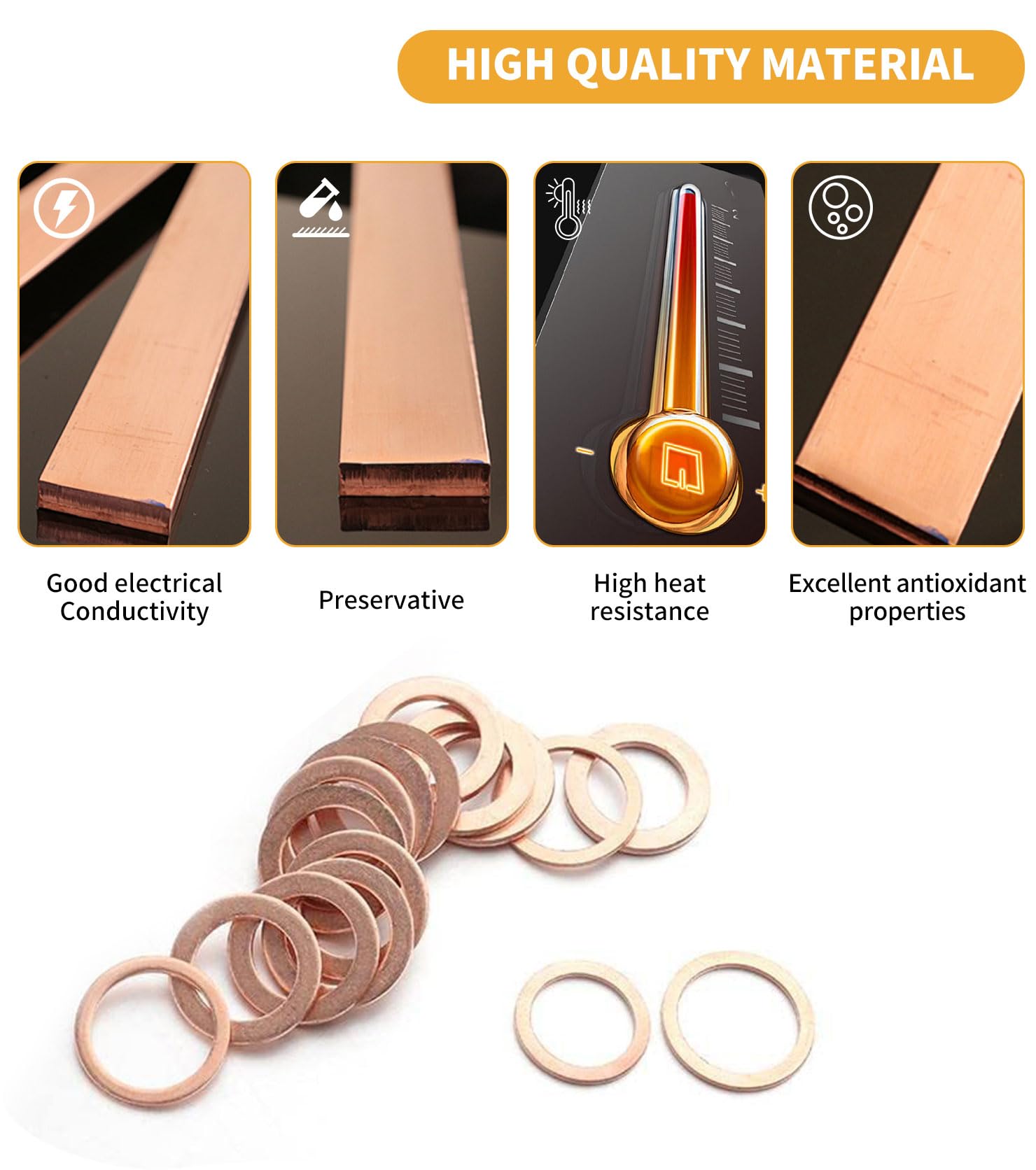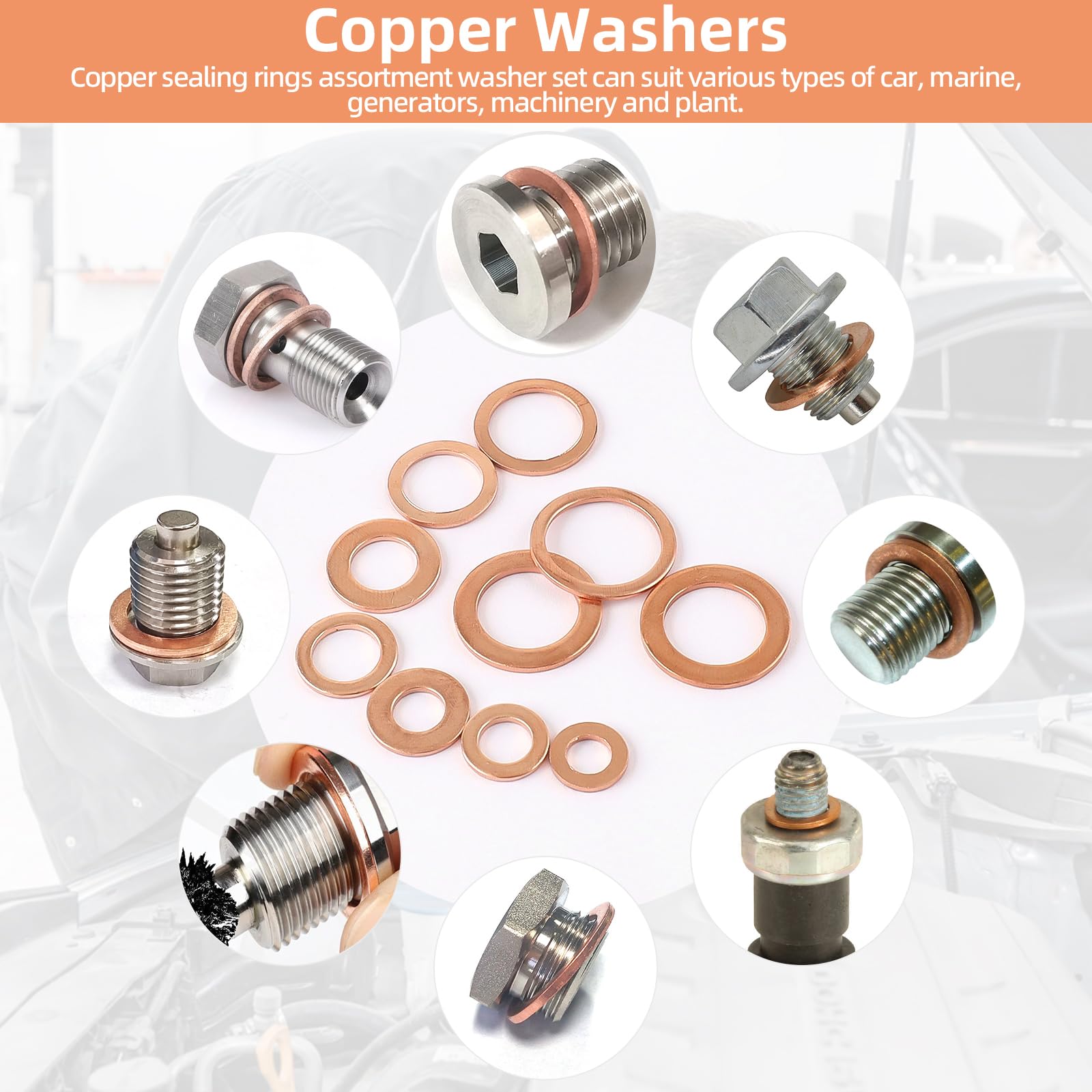 200 Pzs Arandelas Cobre,Plana Arandela De Cobre M5-M14 Kit De Surtido