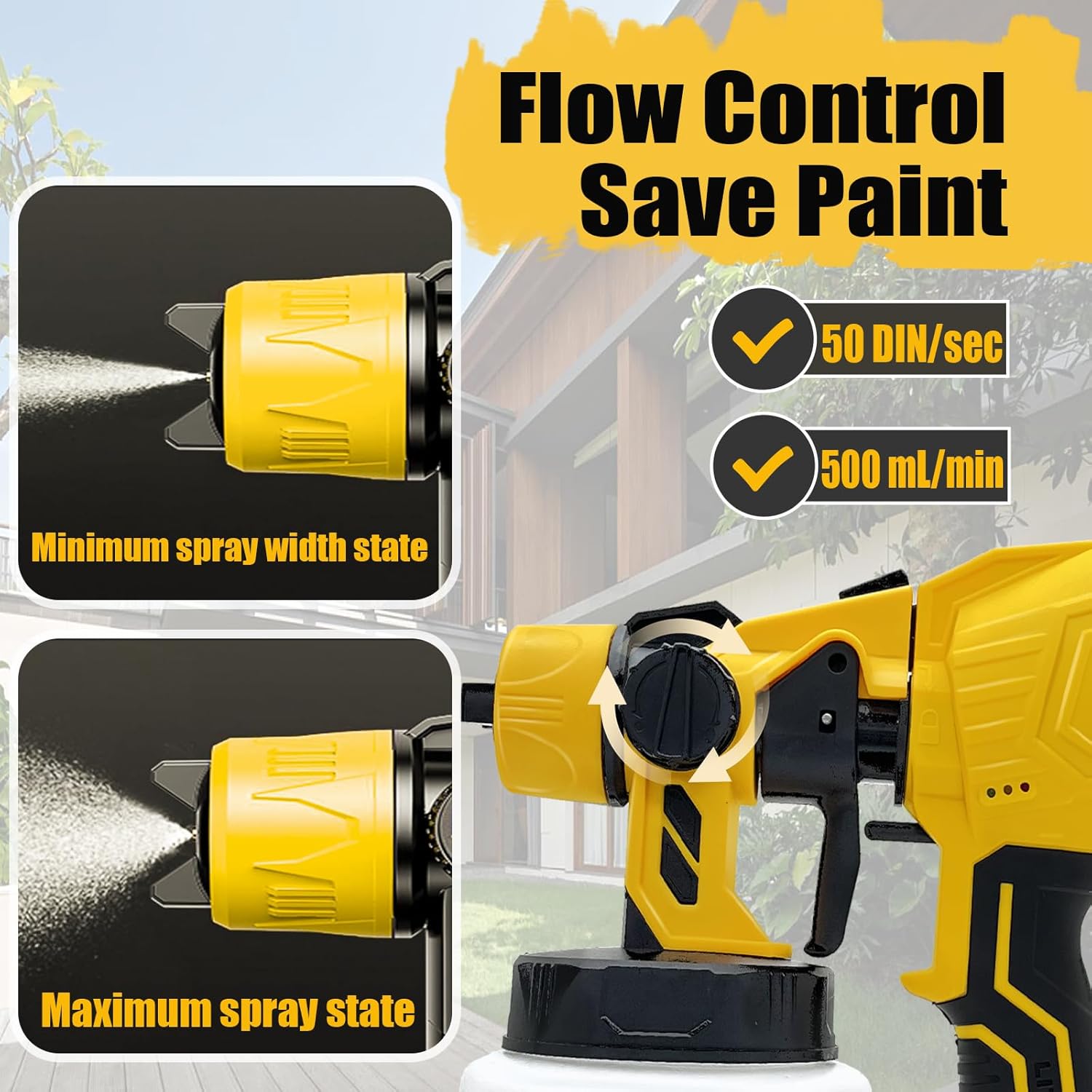 Pulverizador de pintura alimentado por batería: el pulverizador de pintura inalámbrico es compatible con baterías Dewalt de 18 V/20 V, como DCB200, DCB201, DCB203, DCB204, DCB-205, DCB206, DCB240, etc. El paquete incluye una variedad de accesorios: un recipiente de 1000 ml, arandelas, filtros, un embudo y 3 boquillas (una preinstalada). Estos accesorios satisfacen todas sus necesidades de pintura, asegurando una experiencia de usuario completa y conveniente Equipado con boquillas de 4 tamaños, 1,0 mm, 1,8 mm, 2,5 mm, 3,0 mm, 2,5 mm de tamaño se ha instalado en el pulverizador de pintura. Pistola Pintura Batería LINGYUE - Pulverizador De Pintura Inalámbrico Para Batería Dewalt De 20 Pistola Pintura Electrica TDAGRO Pulverizador de pintura inalábrico de 20 V 3.0 Ah, pistola eléctrica HVLP de pintura en... La perilla de ajuste de flujo en la parte trasera del gatillo gestiona el caudal de diferentes fluidos También proporciona una taza de viscosidad con el pulverizador de pintura, la viscosidad máxima de 40 DIN/s y la velocidad más alta a 160 L/min, lo que te ayuda a ahorrar toneladas de tiempo y hacer tu trabajo más rápido. Amplia aplicación: el pulverizador de pintura inalámbrico es ligero y portátil, puedes llevarlo a cualquier lugar. (batería no incluida) El pulverizador de pintura portátil te permite rociar varios proyectos como revestimiento de puertas, ventanas, paredes, vallas, cubiertas, techos, suelos, armarios, muebles del hogar, trabajos de bricolaje, etc Pulverizador de pintura inalámbrico compatible con batería Dewalt